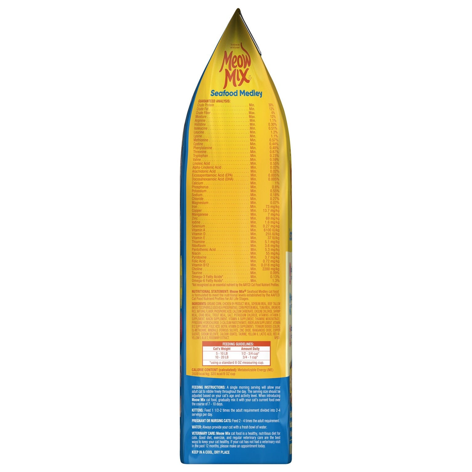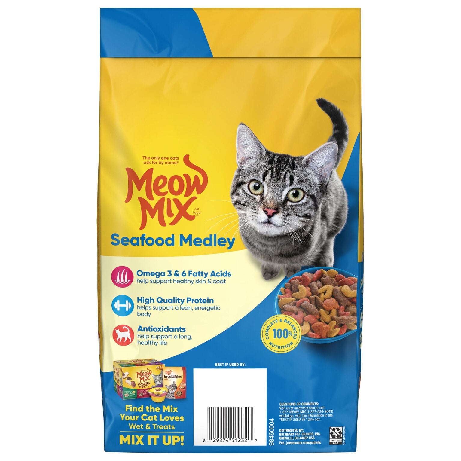 Seafood loving cats find the succulent taste of Meow Mix® Seafood Medley dry cat food irresistible. The flavorful mix with tuna, shrimp, crab, and trout flavors makes this nutritious meal the ideal choice for a happy cat.